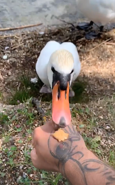 Hoci nevyzerali vyhladovane, raper sa rozhodol, že pár dobrotiek labutiam dopraje. Je pritom známa vec, že voľne žijúce vtáky by ľudia dokrmovať nemali. Tobôž nie pečivom, ani sladkými, slanými či hocijako ochutenými keksíčkami. Patrik ale zrejme nič lepšie po ruke nemal.