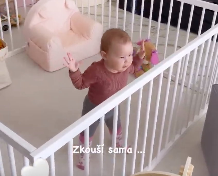 Na pozadí v televízore bežal Monikin klip v spolupráci s Kmeťovcami a Rumia tancovala ako divá. Dokonalé podrepy a ruka hore, ale potom prišiel zásadný moment - pustila sa obomi rukami a pokúsila sa "trsnúť si" bez držania. To je neklamné znamenie, že už čoskoro začne samostatne chodiť a tak sa zaradí k dokonalo tabuľkovým deťom, ktoré spravia prvé kroky okolo roka. V pozadí na videu bolo počuť nadšené povzbudzovanie a potlesk nielen Moniky, ale zrejme aj Ruminkinej starej mamy. To sú presne momenty, ktoré stojí za to si pripomínať aj po rokoch.