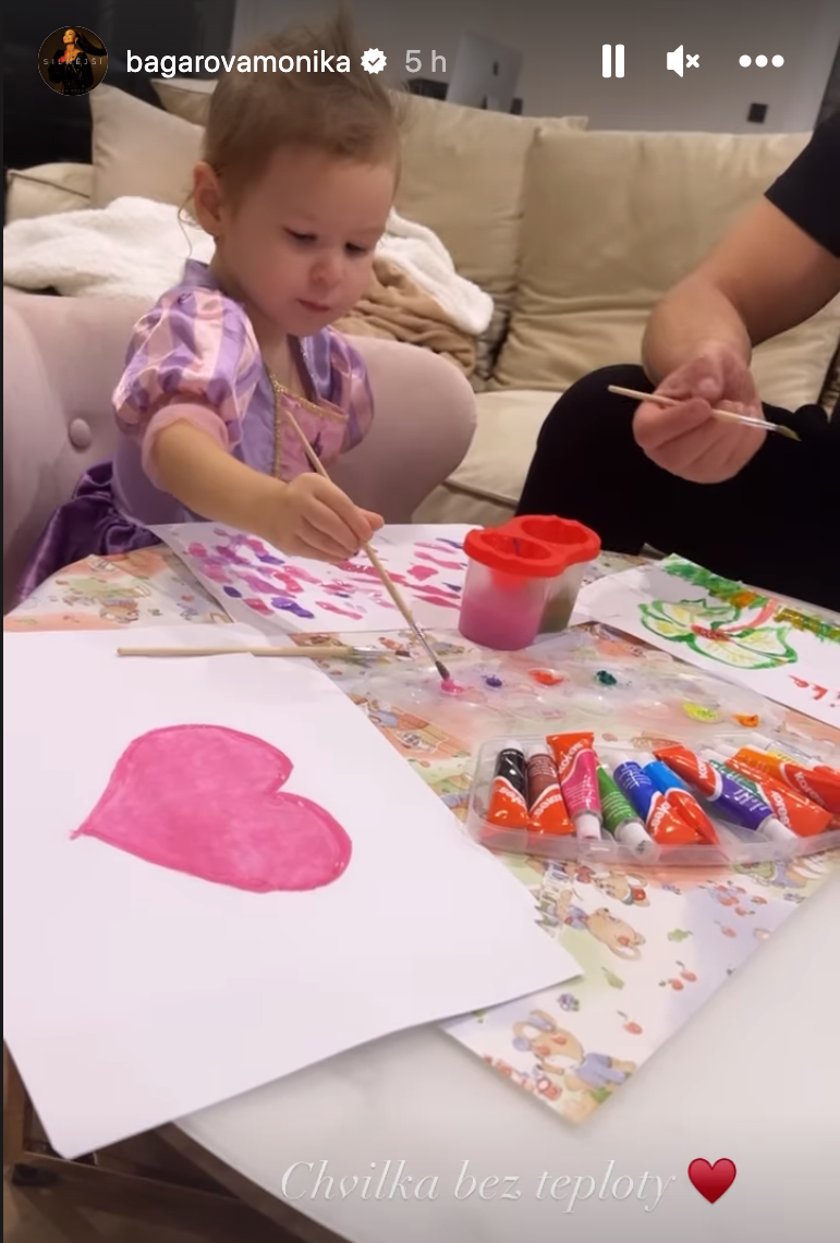 Bagárová zdieľala fotku ich prepletených rúk, v idylke na gauči pod dekou pri rozžiarenom vianočnom stromčeku. Zdá sa, že Leonarda si už vzala aj domov, čomu by nasvedčovala aj fotka z jej instastories, kde kohosi mužská ruka pomáha chorej Ruminke pri maľovaní obrázkov. Bola by to skvelá správa, že 2,5-ročné dievčatko priateľa jej mamy prijalo a sú na najlepšej ceste vytvoriť rodinu.