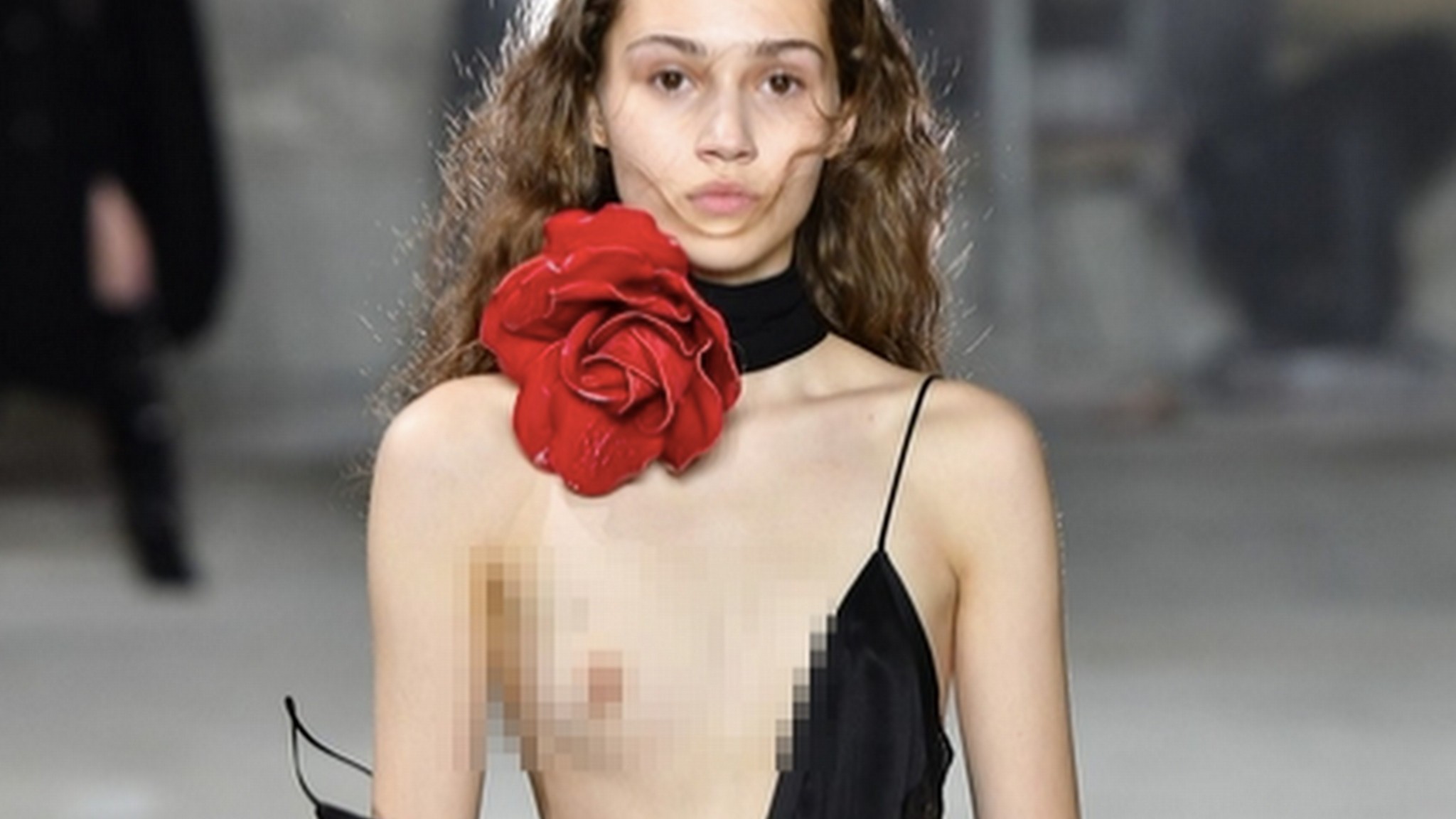 Veľmi chudá a mladučká modelka zažila na prehliadke poriadny trapas. Ramienko zo šiat sa jej zosunulo z jej uzučkých pŕs a ešte užšieho hrudníka.
