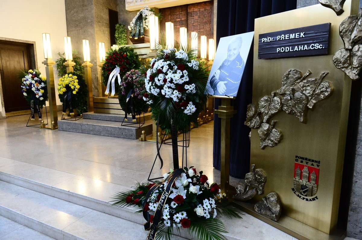 Kateřina Kalendová, vdova po Přemkovi Podlahovi, celý čas obradu sedela zrútená a srdcervúco plakala. So svojim mužom sa rozlúčila prostredníctvom predtočeného odkazu, kde mimo iného taktiež poďakovala všetkým prítomným za to, že sa prišli s Přemkom rozlúčiť.