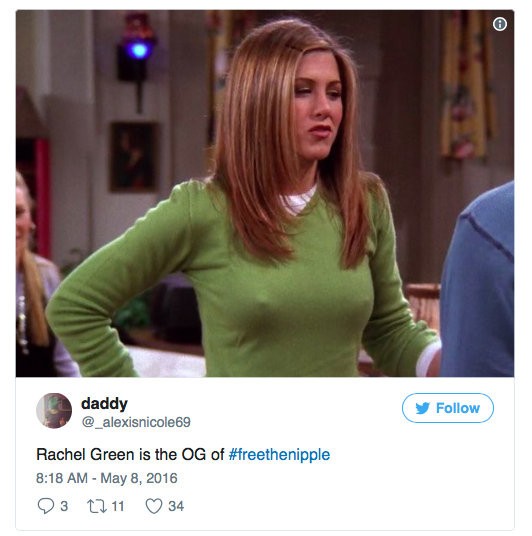 Ako postava Rachel Green zaujala svojimi stojacimi bradavkami a od tých čias sa to s ňou vezie. Ako sama vraví, väčšina novinárov sa jej to vo finále počas rozhovoru opýta. Už si na to zvykla. Nechápe však, ako to môže stále niekoho zaujímať.