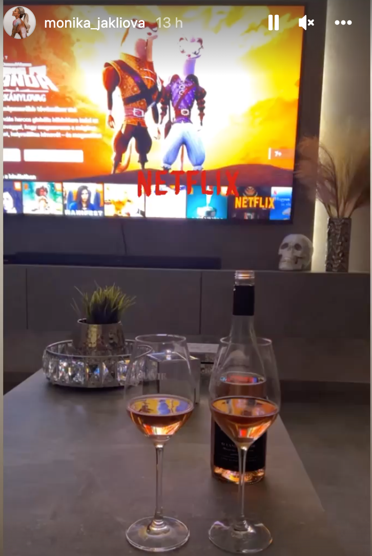 Aj aktuálne Monika zdieľala fotku s dvomi pohármi vína: